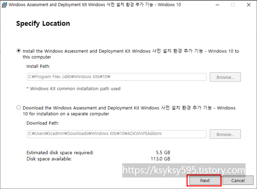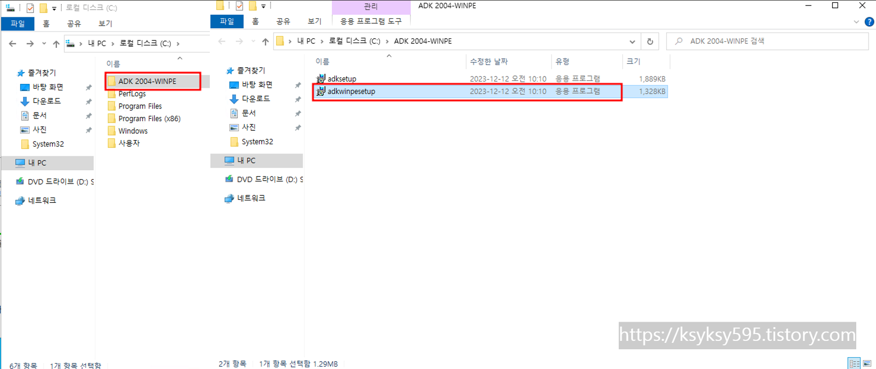 그다음, [adkwinpesetup.exe]을 실행합니다. (관리자 권한으로 실행)