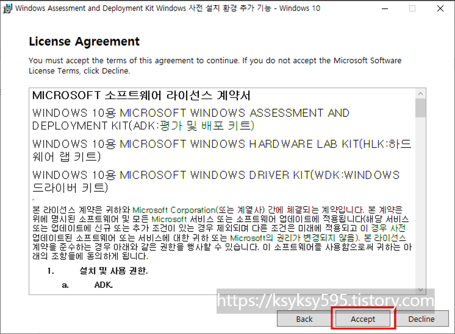 라이선스 사용권 계약에서 [Accept]를 클릭합니다.