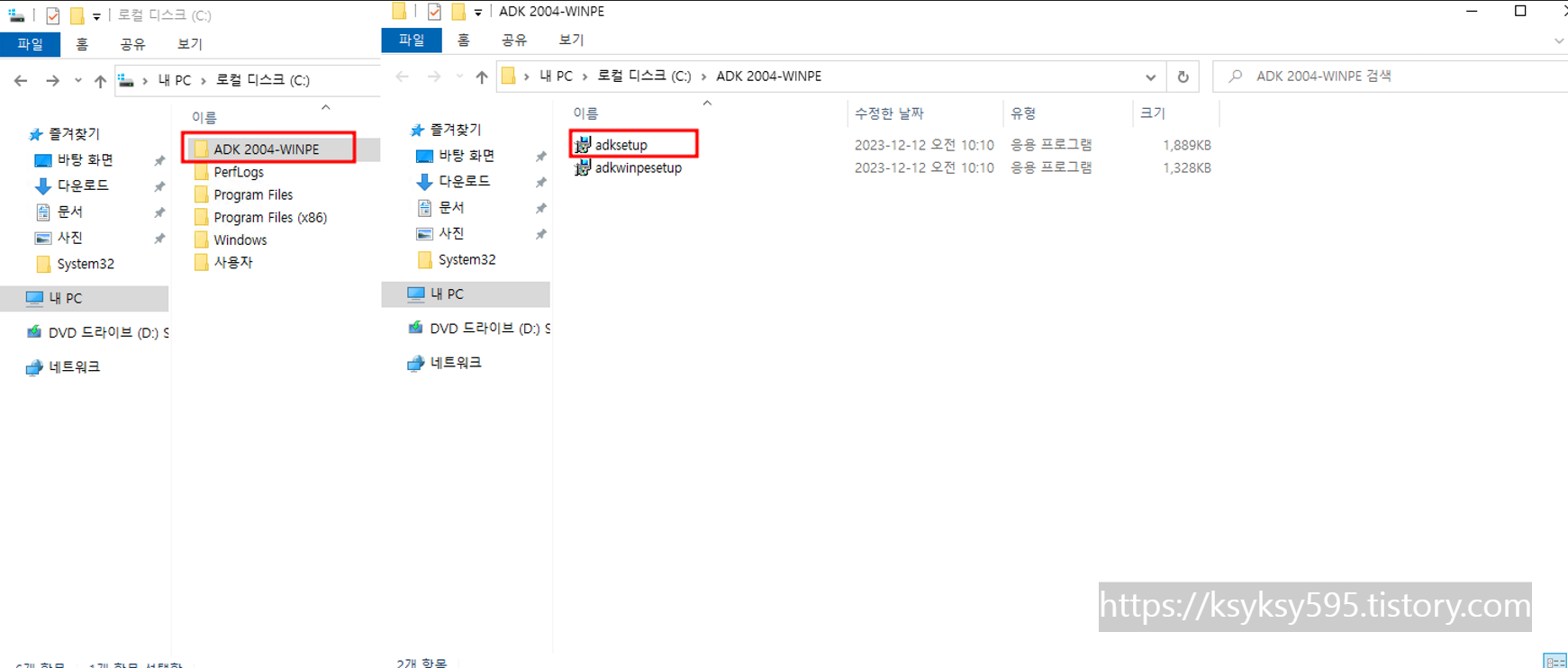 MECM (구 SCCM) 서버에서 아래 링크로 접속하여, adksetup 파일과 adkwinpesetup 파일을 다운로드합니다.