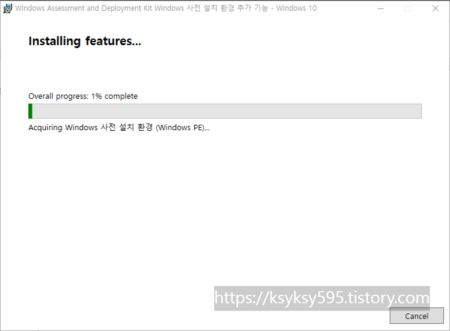 [Windows 사전 설치 환경 (Windows PE) 옵션을 선택 후, [Install] 클릭합니다.