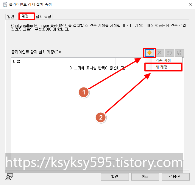 [계정] 탭에서 태양(?) 문양을 클릭 후, [새 계정]을 클릭합니다.
