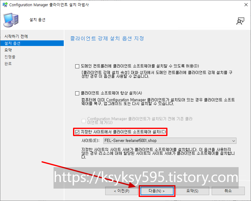 [지정한 사이트에서 클라이언트 소프트웨어 설치]를 선택 후, [다음]을 클릭합니다.