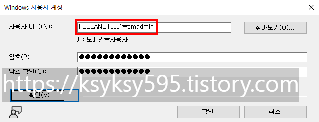 [Domain Admins] 그룹에 속한 계정과 암호를 입력합니다.