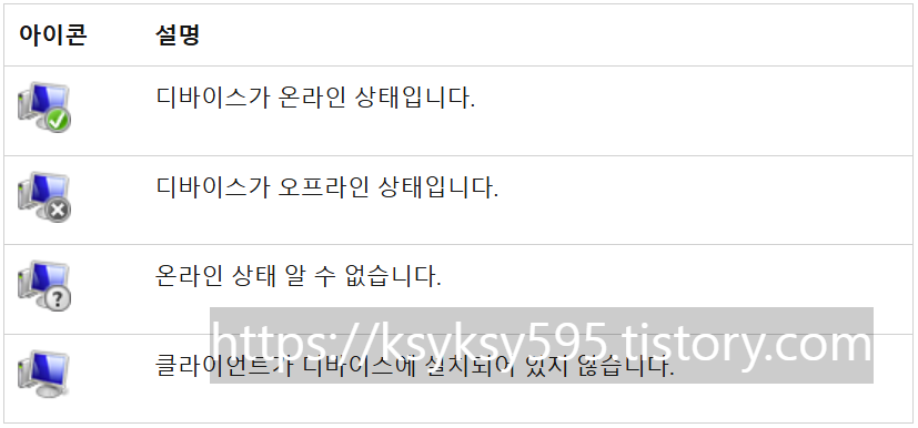 아이콘 표시에 따른 설명은 아래와 같습니다.