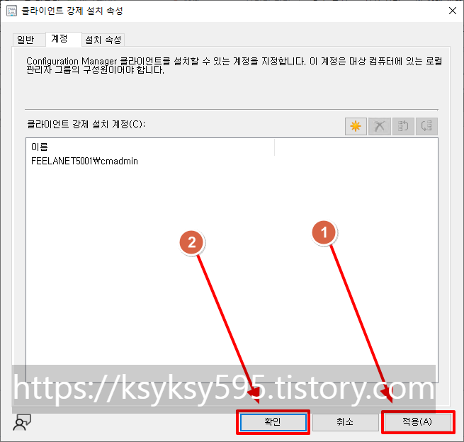 설정이 완료되면, [적용] --> [확인]을 클릭합니다.