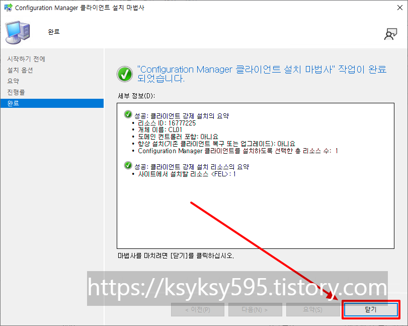 에이전트 배포가 완료되면, [닫기]를 클릭합니다.