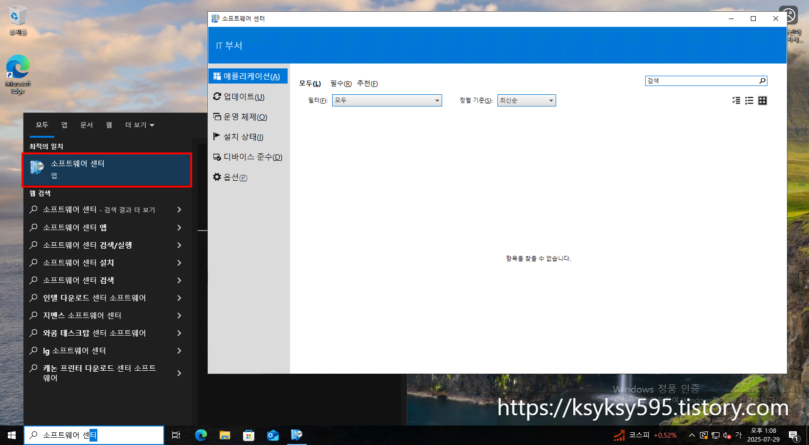 에이전트 설치가 완료되면, 클라이언트 PC에는 [소프트웨어 센터]라는 프로그램이 생성됩니다.