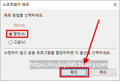배포 방법을 [할당]으로 선택 후, [확인]을 클릭합니다.