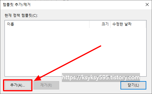 [컴퓨터 구성] --> [정책] --> [관리 템플릿]을 우 클릭 후, [템플릿 추가/제거]를 클릭합니다.