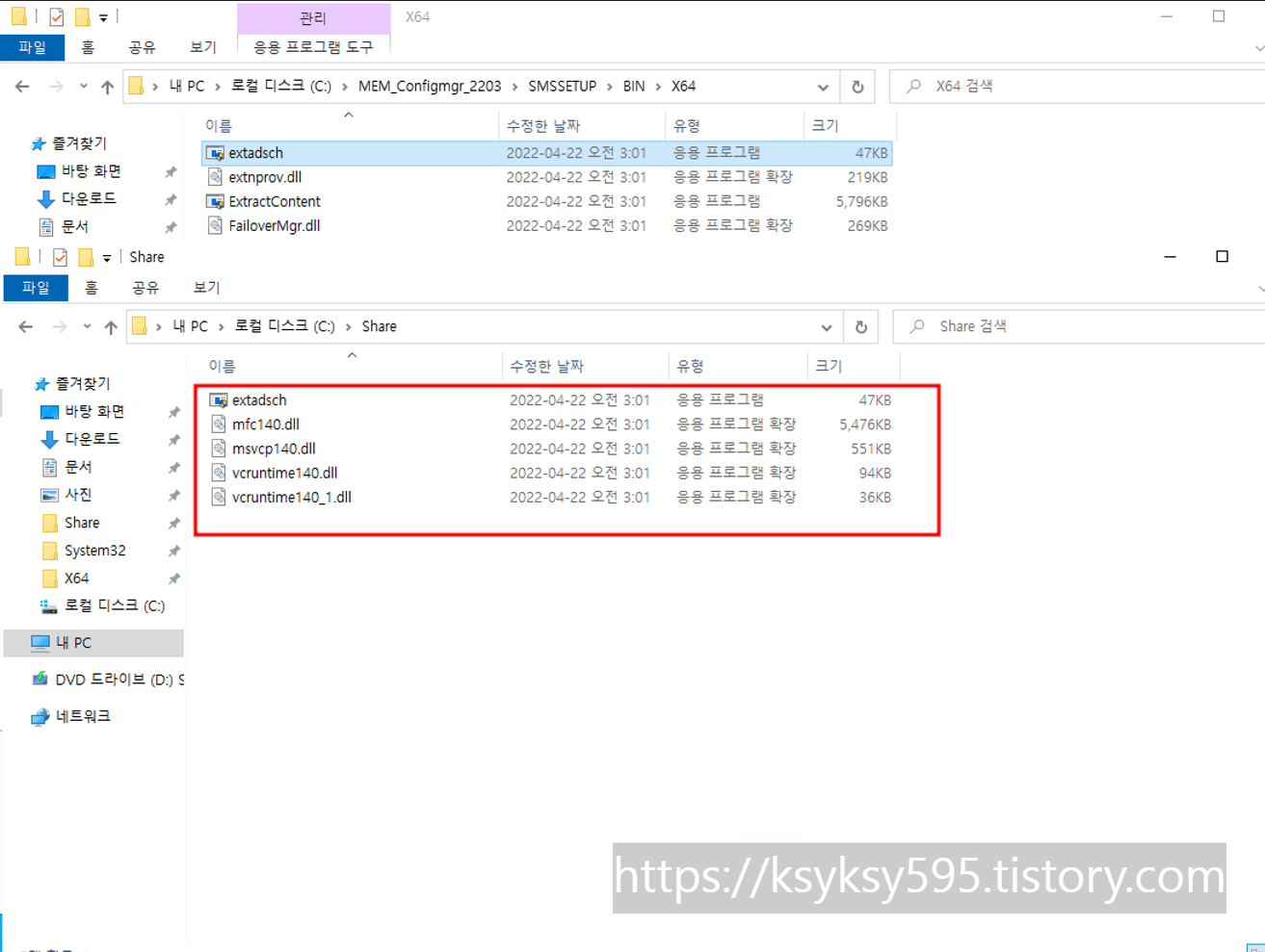 MECM iso 파일을 탑재 후, SMSSETUP --> BIN --> X64 폴더에서 아래 파일을 공유폴더로 복사합니다.