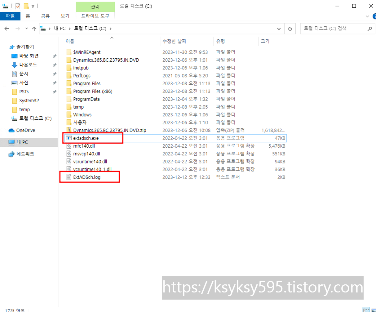 AD 서버에서 extadsch.exe 파일을 실행하면, ExtADSch.log 가 생성됩니다.
