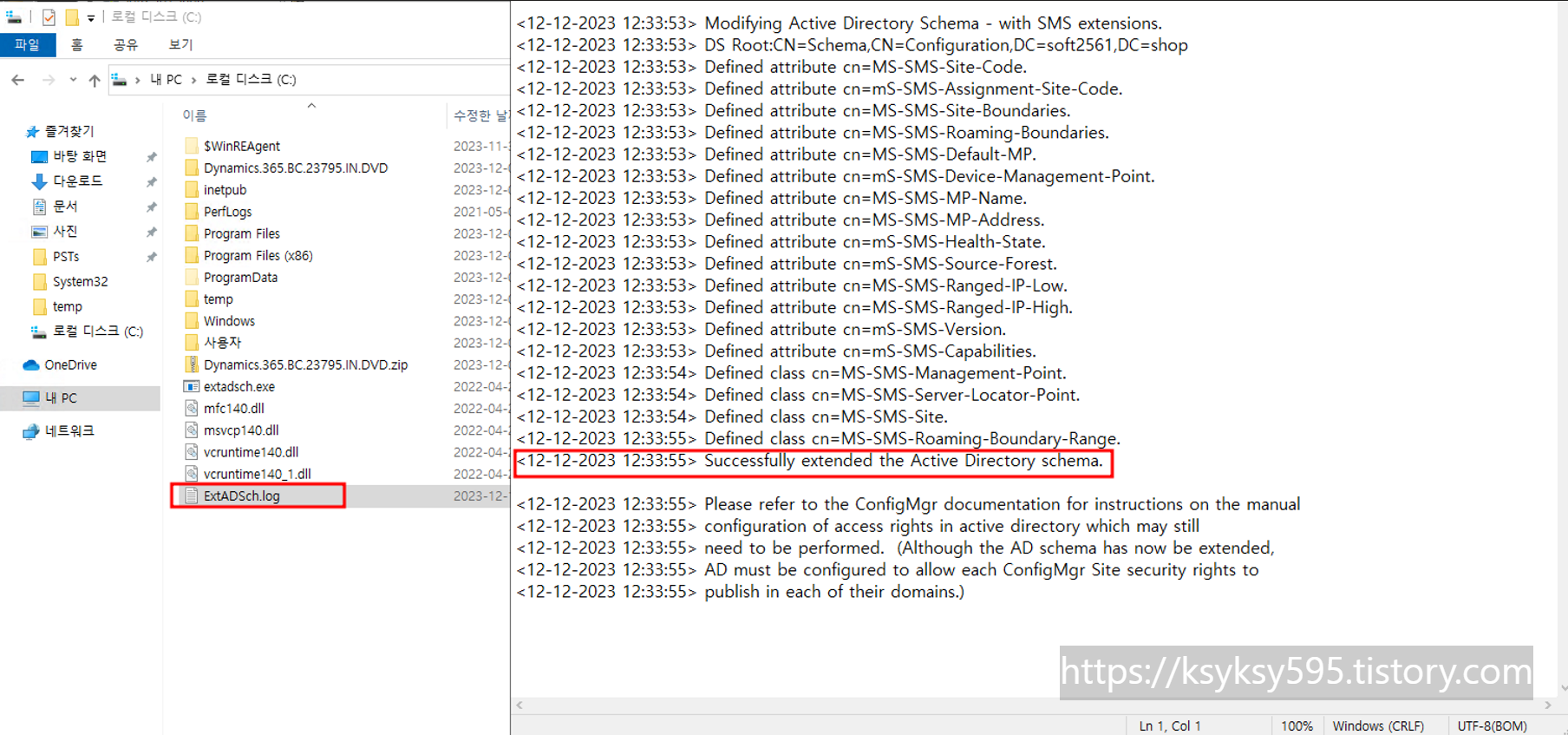 ExtADSch.log를 열어, 아래와 같이 [Successfully ~ schema]가 확인되면, 정상적으로 Schema 확장이 완료된 겁니다.