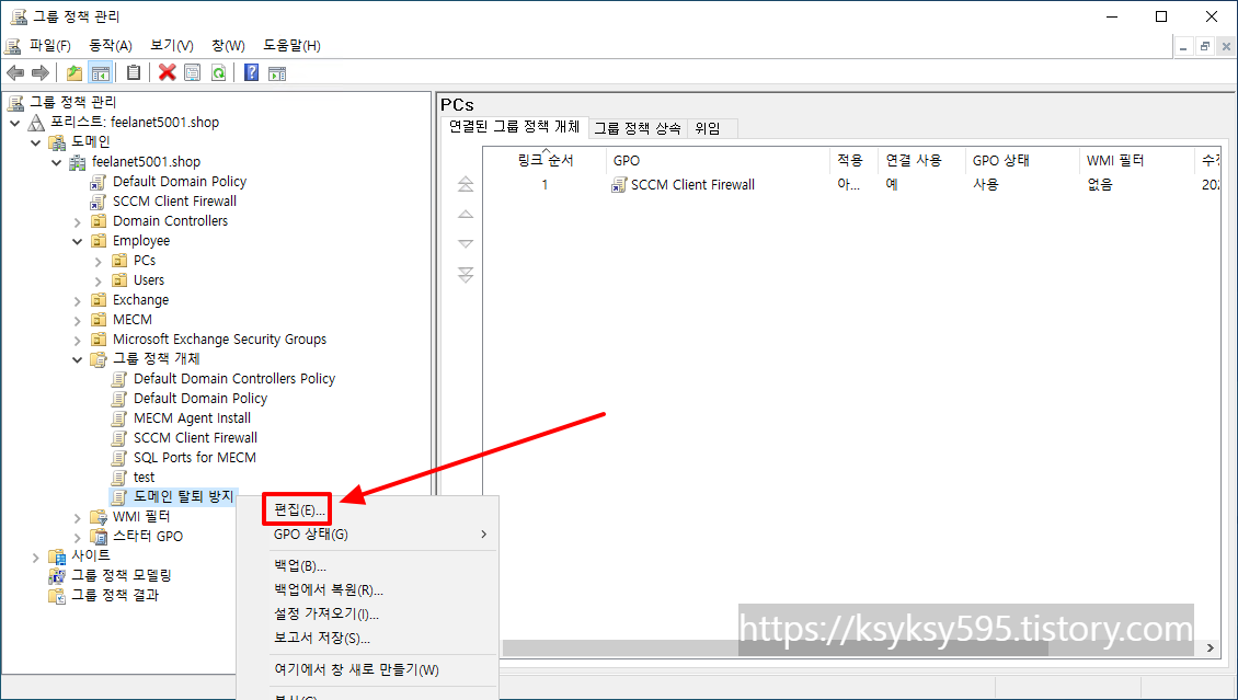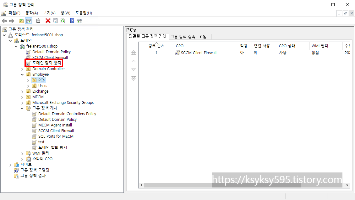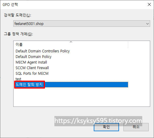 생성한 [도메인 탈퇴 방지] 정책을 선택합니다.