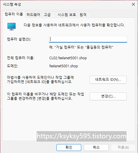 정책 적용 후 [컴퓨터 이름] 탭이 사라져 도메인 탈퇴를 할 수 없습니다.
