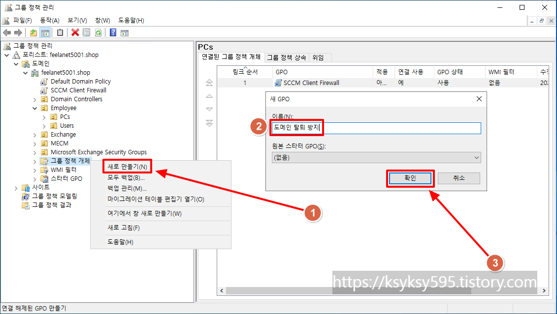 [그룹 정책 개체] 를 우 클릭 후, [새로 만들기] 를 클릭 후, 정책 [이름] 을 입력합니다.