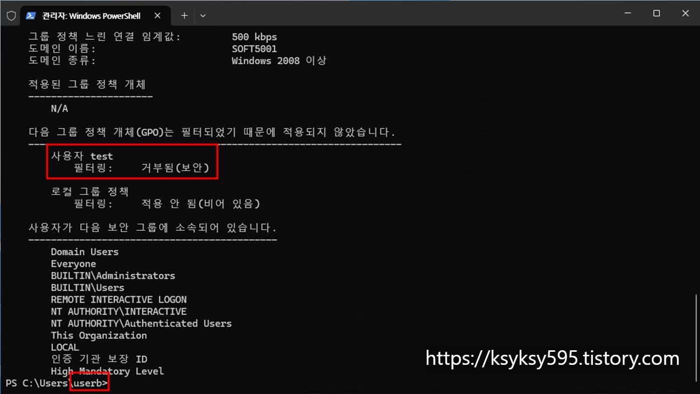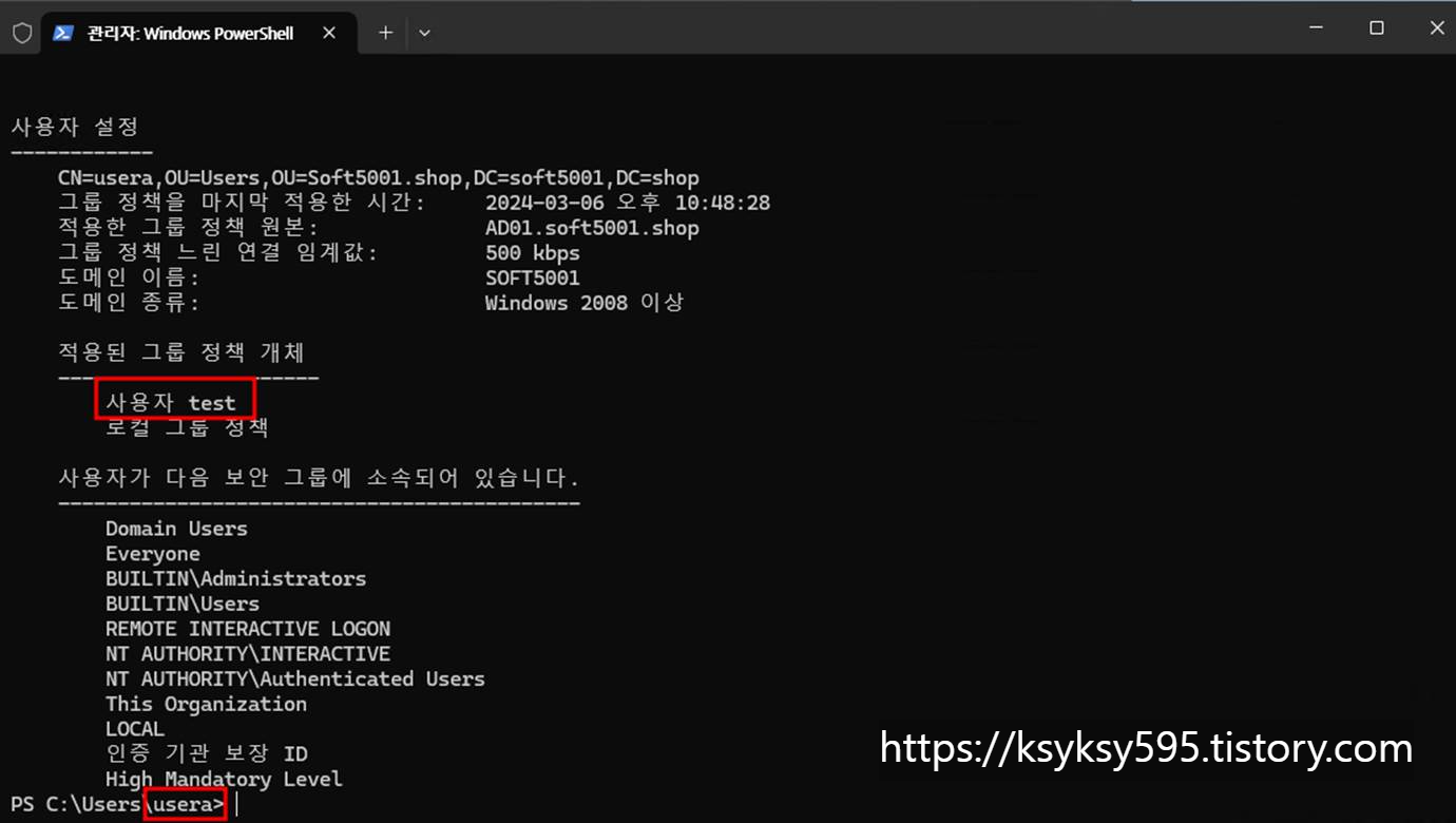 배포를 진행 시, [그룹 정책 적용] 한 사용자는 정책이 정상적으로 배포가 되었습니다.