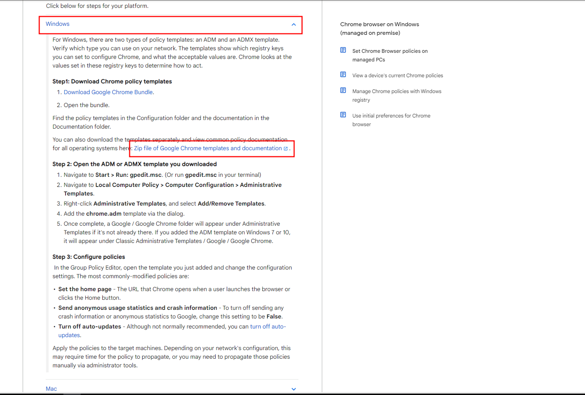 아래 URL 에 접속하여, Chrome GPO 에 필요한 Chrome GPO Template 을 설치합니다.