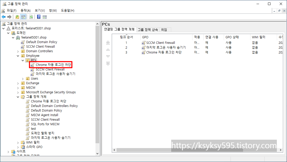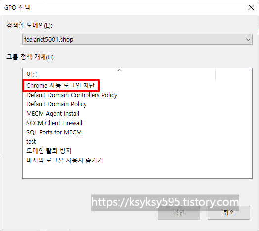 생성한 [Chrome 자동 로그인 차단] 정책을 선택합니다.