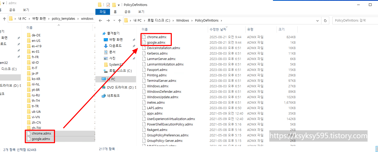 policy_templates\windows\admx\ko-KR\chrome.adml & google.adml --> C:\Windows\PolicyDefinitions\ko-KR