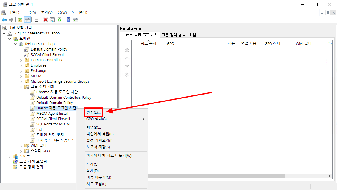 생성한 정책을 우 클릭 후, [편집] 을 클릭합니다.