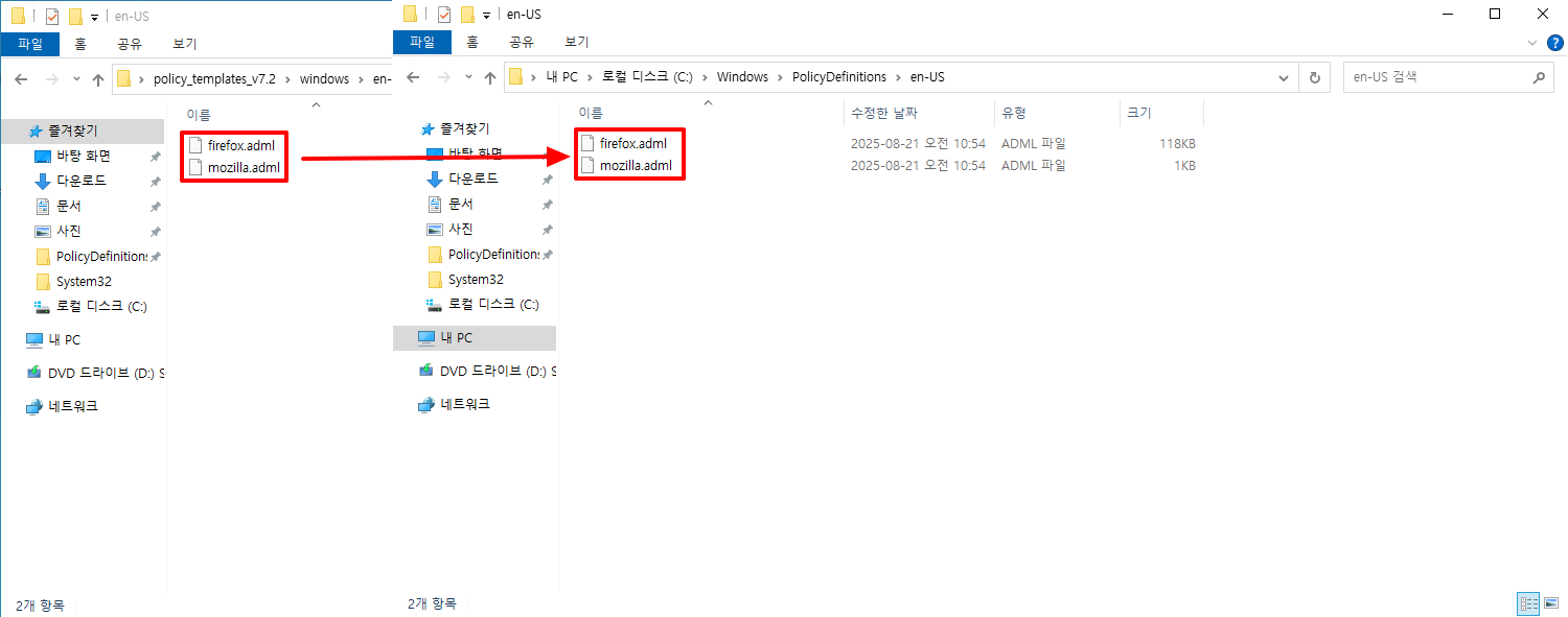 policy_templates_v7.2 폴더를 압축 해제 후, 해당 파일을 Active Directory 파일 위치로 복사합니다.