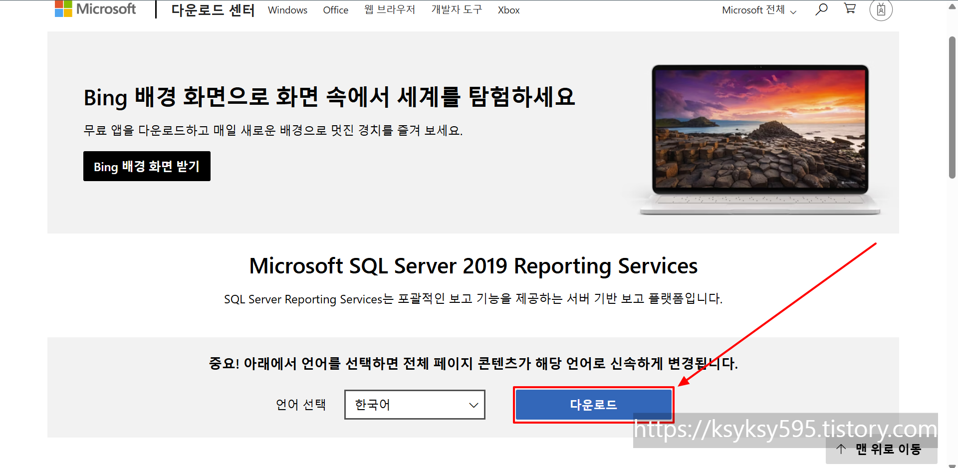 아래 URL에 접속하여, [SQL Reporting Services]를 설치합니다.