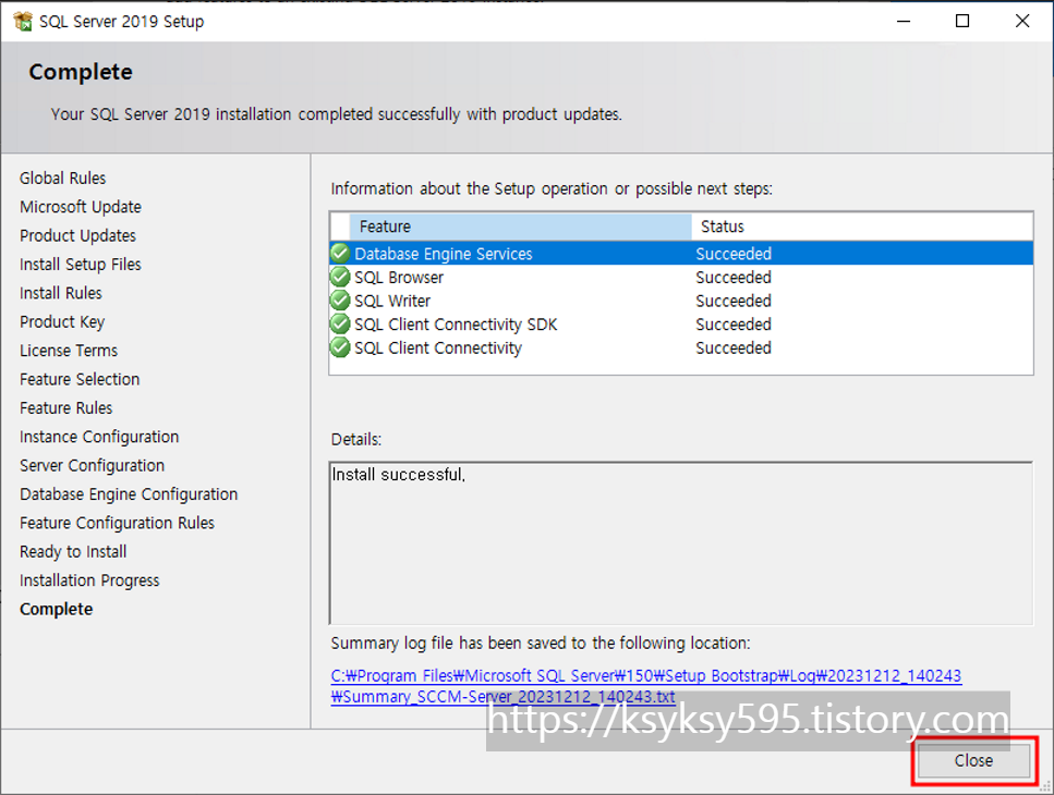 설치가 완료되면, [닫기] 클릭 후, MECM 서버를 재부팅합니다.
