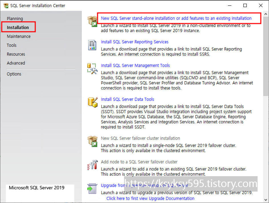 [Installation]에서 [New SQL Server~]를 클릭합니다.