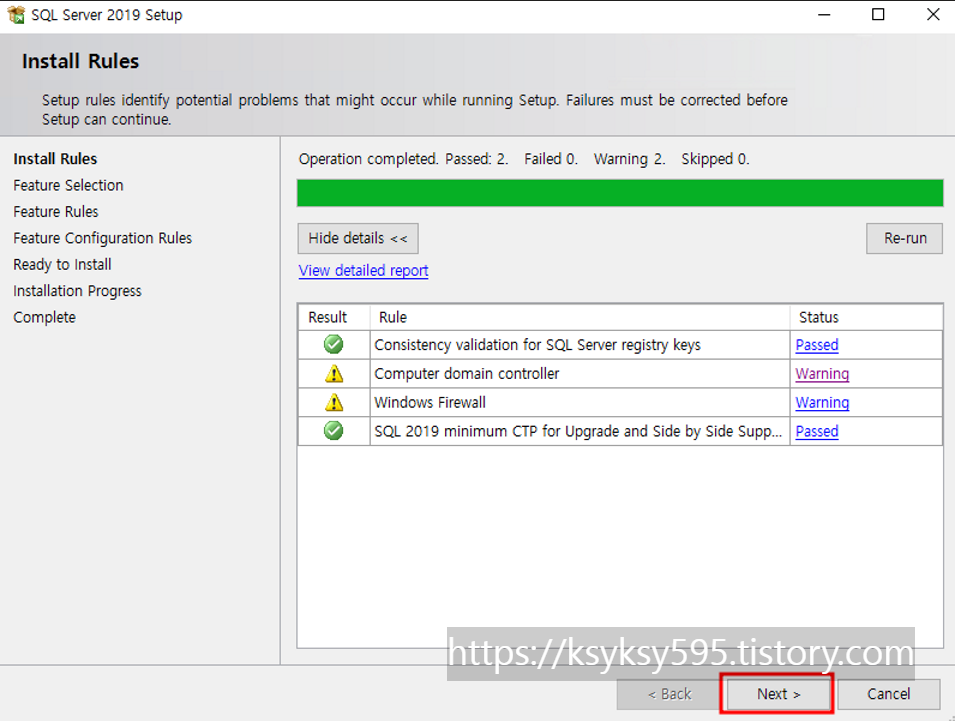 요구사항 확인이 완료되면, [Next] 를 클릭합니다.
