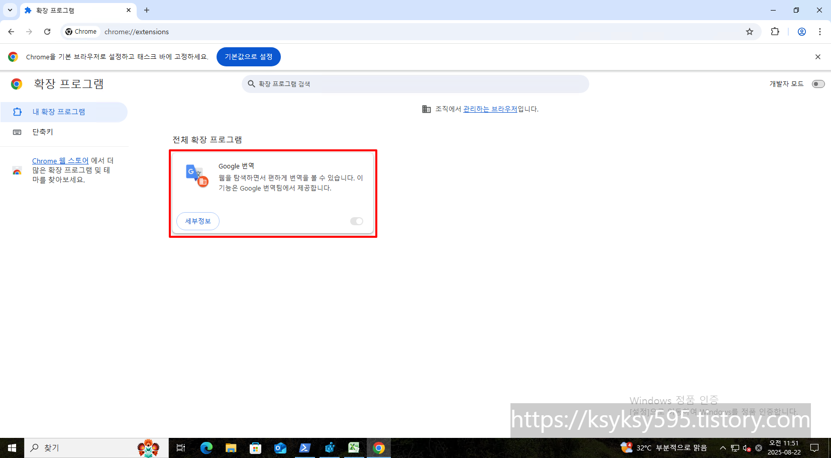 정책이 적용되면, 확장 기능이 추가된 것을 확인할 수 있습니다.