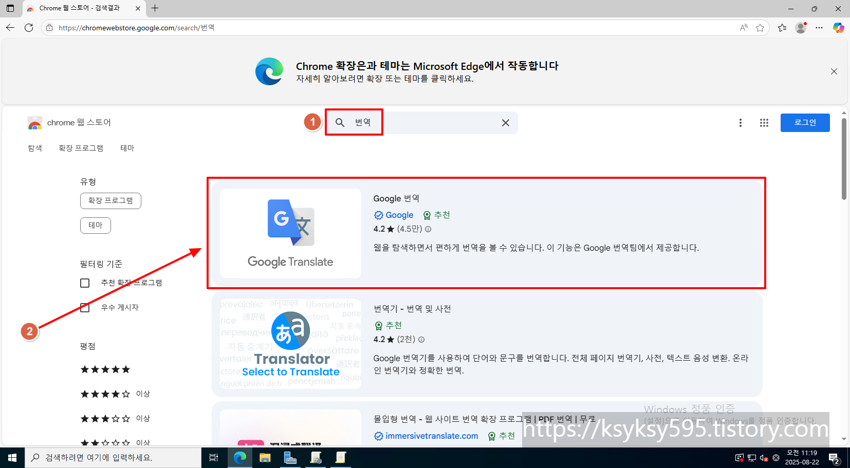 추가 할, 확장 기능을 검색 후, 클릭합니다.