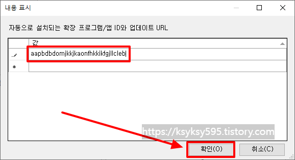 접속 후, URL에 확장 기능 이름 / 뒤에 있는 [CSLID] 값을 복사하여, 정책에 붙여넣습니다.