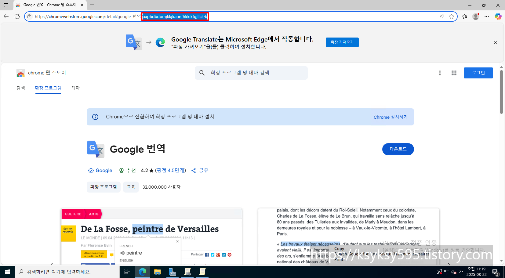 아래 URL 을 클릭하여, [Chrome 추가 기능] 웹스토어에 접속합니다.