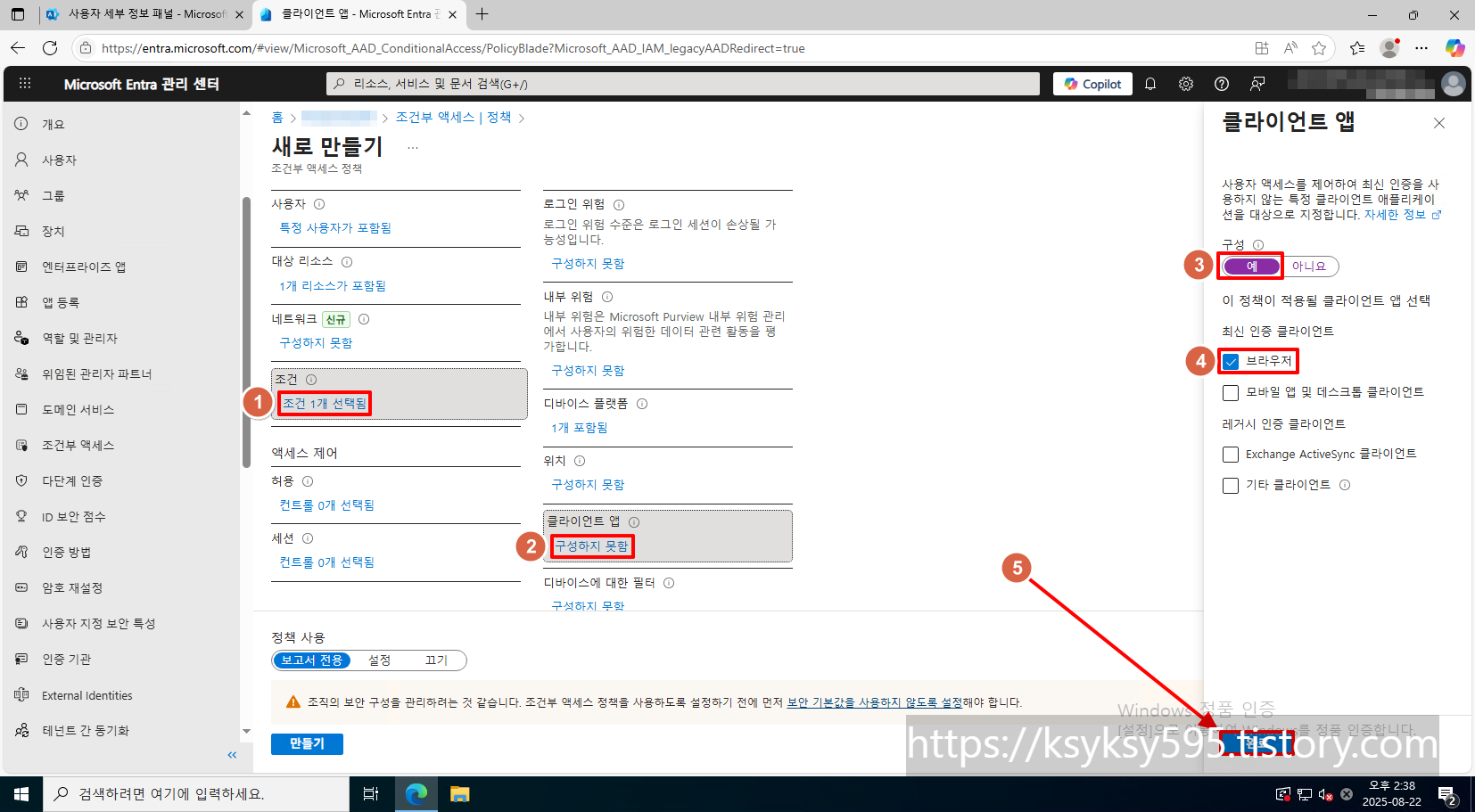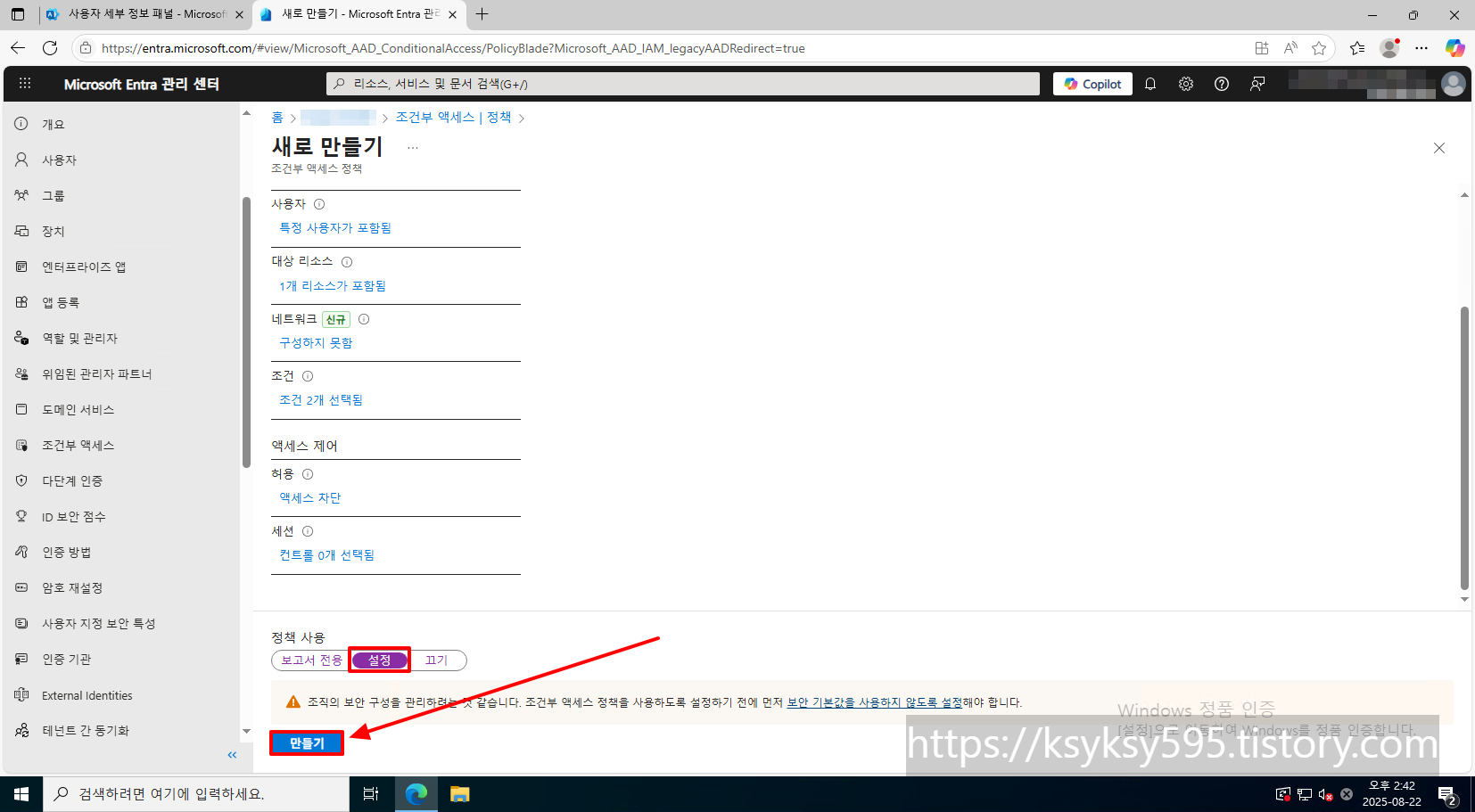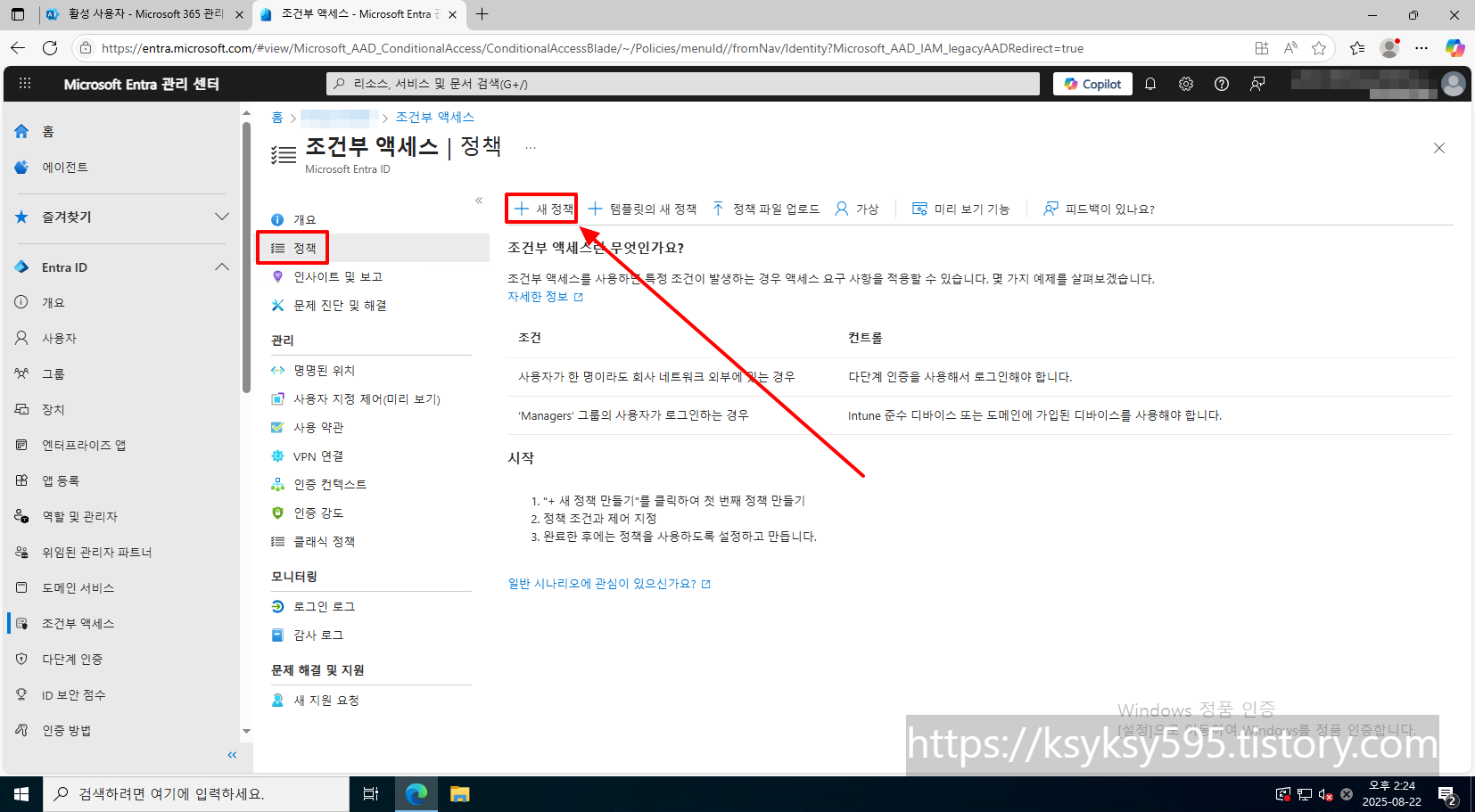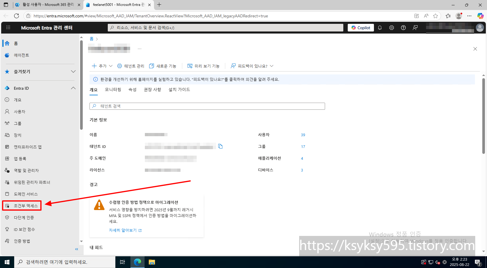 [Entra ID] 탭에 있는 [조건부 액세스] 를 클릭합니다.