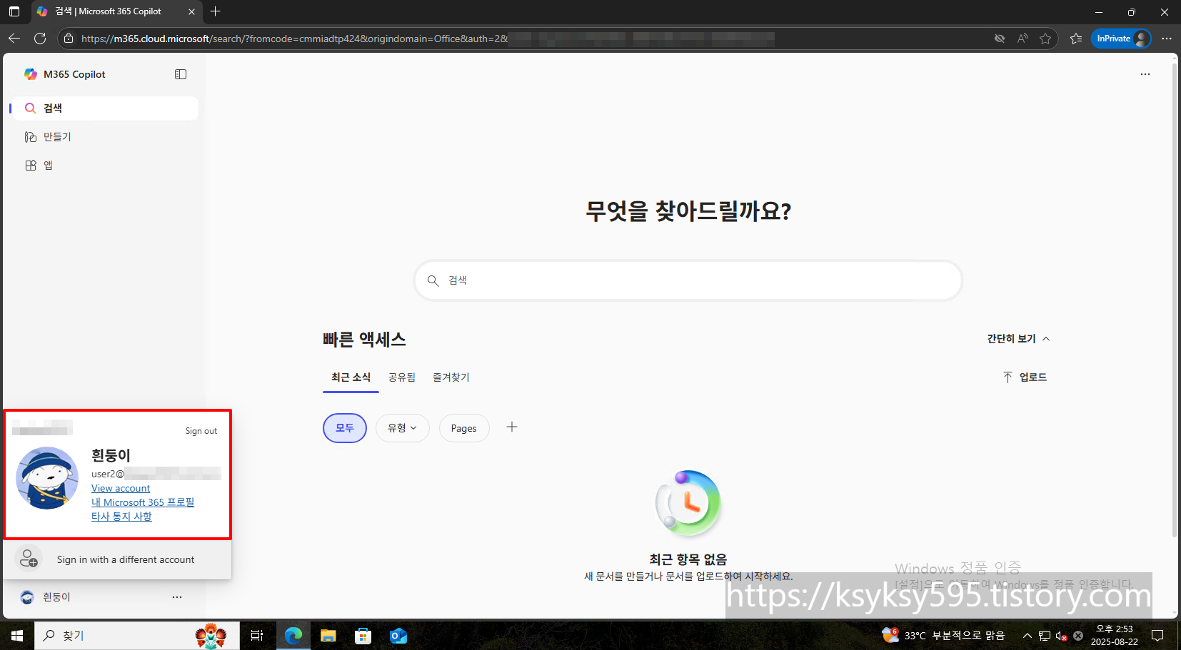 아래 M365 관리자 센터에 접속하여, M365 관리자 계정으로 로그인 합니다.