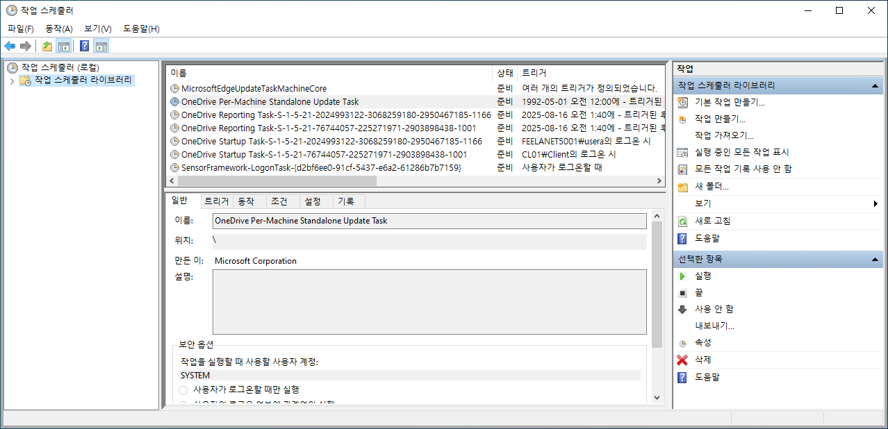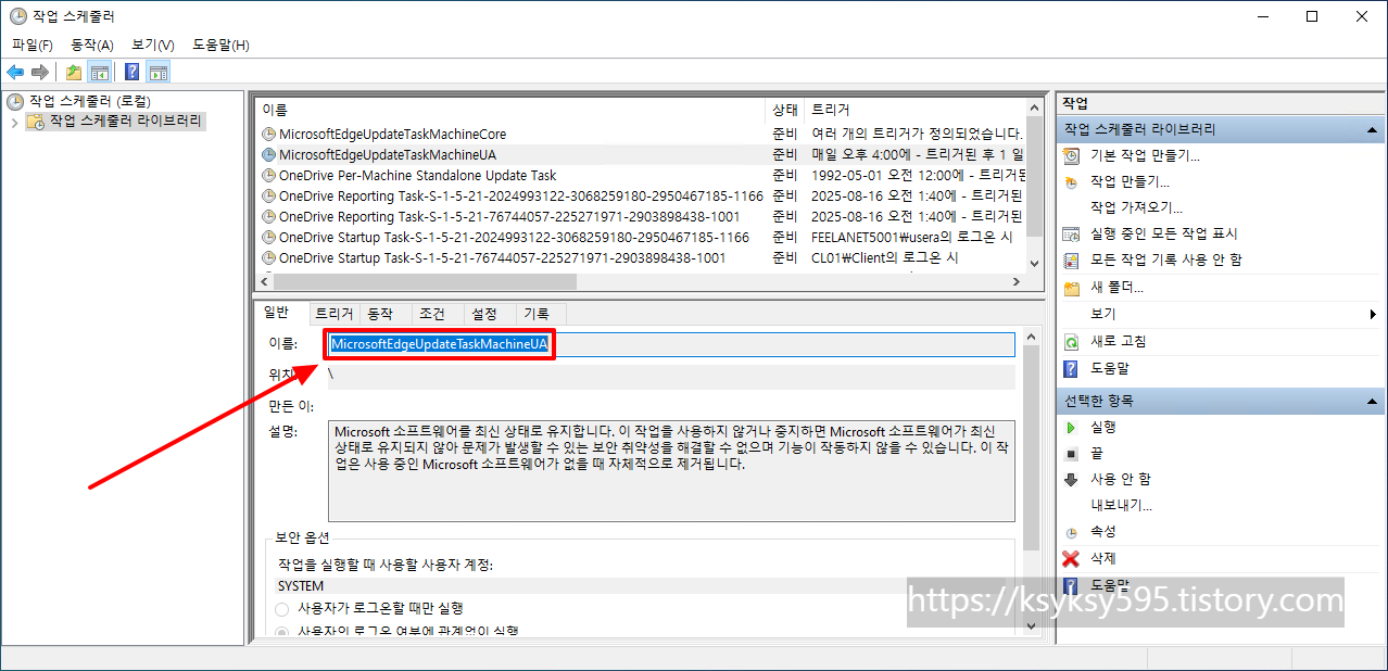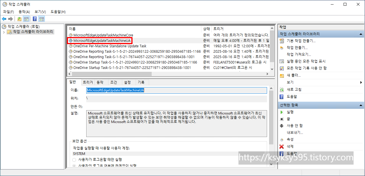 정책 적용 후, 해당 [MicrosoftEdgeUpdateTaskMachineUA] 작업스케줄러가 삭제된 모습입니다.