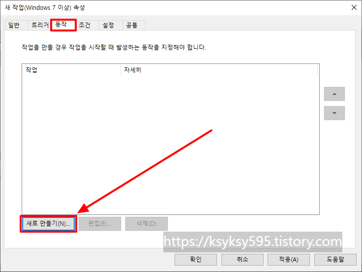 [동작] 탭에서 [새로 만들기] 를 클릭합니다.