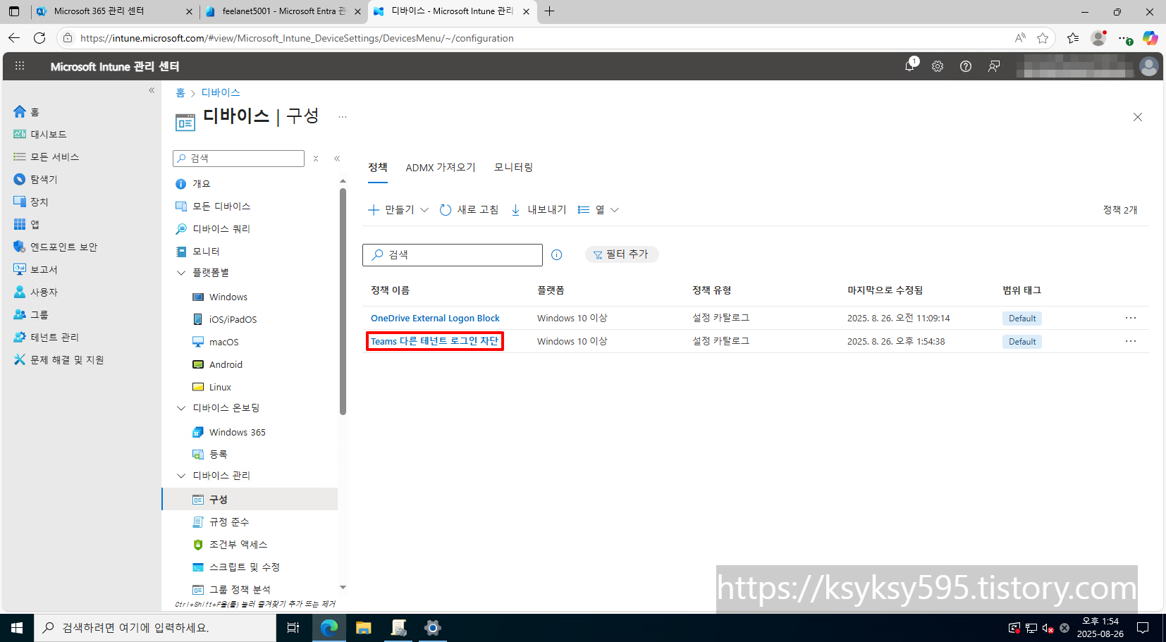 | OneDrive 개인 계정 및 다른 테넌트 로그인 차단 정책 (0) | 2025.08.26 |