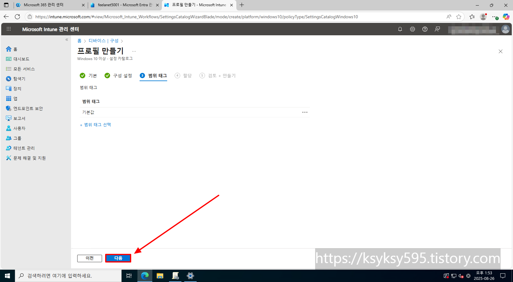 [모든 사용자 추가] & [+모든 디바이스 추가] 를 클릭 하여 추가 후, [다음] 을 클릭합니다.