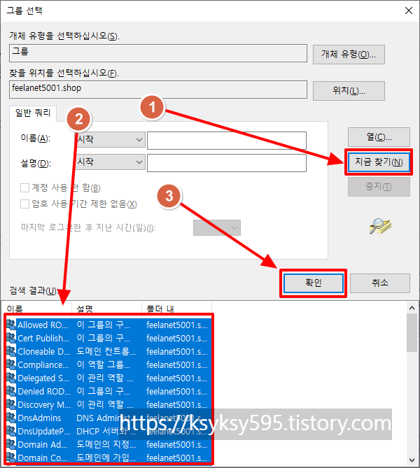 [지금 찾기]를 클릭하여 그룹을 찾은 후, [모든 그룹]을 선택합니다. [확인]을 클릭합니다.