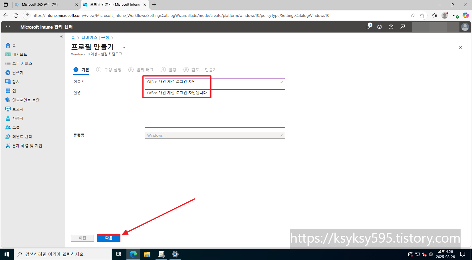 아래 M365 관리자 센터에 접속하여, M365 관리자 계정으로 로그인 합니다.https://admin.microsoft.com https://admin.microsoft.com admin.microsoft.com [관리 센터] 의 [Microsoft Intune] 센터를 클릭합니다. [장치] --> [구성] 으로 이동 후, [정책] 탭에서 [+만들기] --> [+새 정책] 을 클릭합니다. 플랫폼을 [Windows 10 이상] & 프로필 유형을 [설정 카탈로그] 로 설정 후, [만들기] 를 클릭합니다. [이름] 과 [설명] 을 입력 후, [다음] 을 클릭합니다. [+설정 추가] 클릭 후, 검색 창에 [reset] 검색하여, [시스템] 을 선택합니다.[사용자가 전화를 다시 설정하도록 허용] 을 선택합..